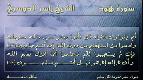 شاهد فيديو: قراءة للايات من 1 ألى 11 من سورة هود للشيخ ياسر الدوسري، نسعى إلى خدمة القرآن الكريم وتقديم أفضل تجربة للاستماع إلى القرآن الكريم، فيديو: قراءة للايات من 1 ألى 11 من سورة هود للشيخ ياسر الدوسري، اللهم اجعل القرآن الكريم ربيع قلوبنا وارزقنا الإخلاص والقبول.